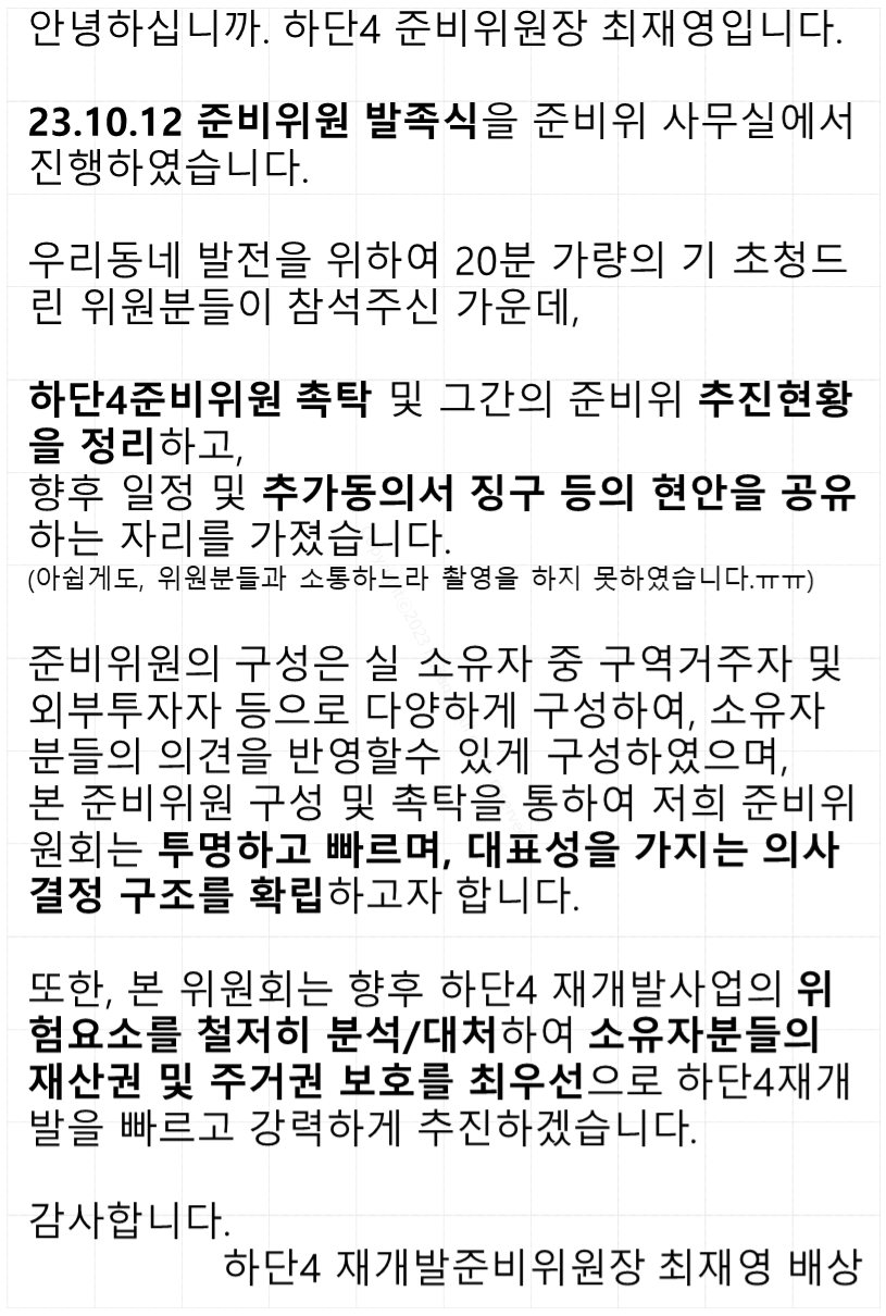 하단4 재개발 준비위 촉탁식 진행하였습니다.
